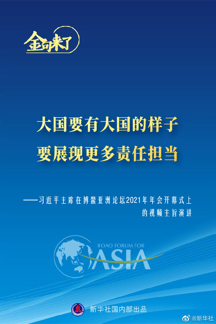 海報(bào):習(xí)近平在博鰲亞洲論壇2021年年會(huì)開(kāi)幕式上發(fā)表主旨演講 新華社記者 鞠鵬 孟麗靜 編制JDu安康新聞網(wǎng)