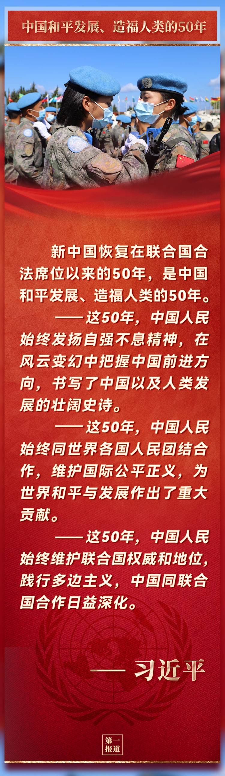 新中國恢復在聯(lián)合國合法席位以來的50年,是中國和平發(fā)展、造福人類的50年。