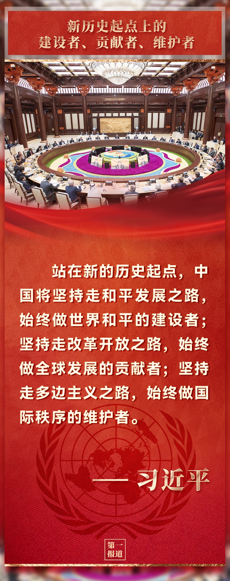 追昔撫今,鑒往知來。站在新的歷史起點,中國將堅持走和平發(fā)展之路,始終做世界和平的建設者;堅持走改革開放之路,始終做全球發(fā)展的貢獻者;堅持走多邊主義之路,始終做國際秩序的維護者。