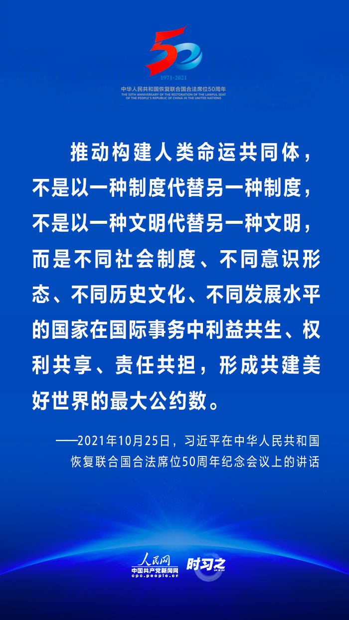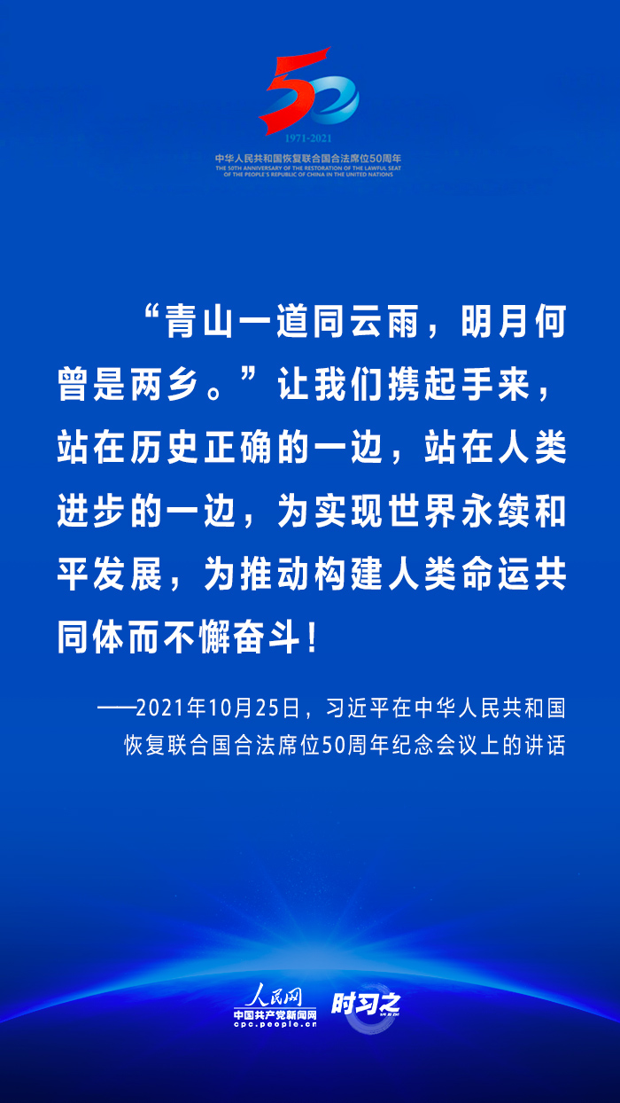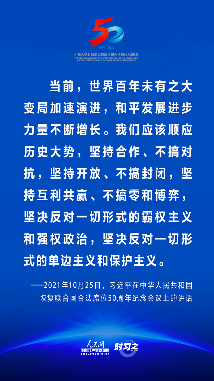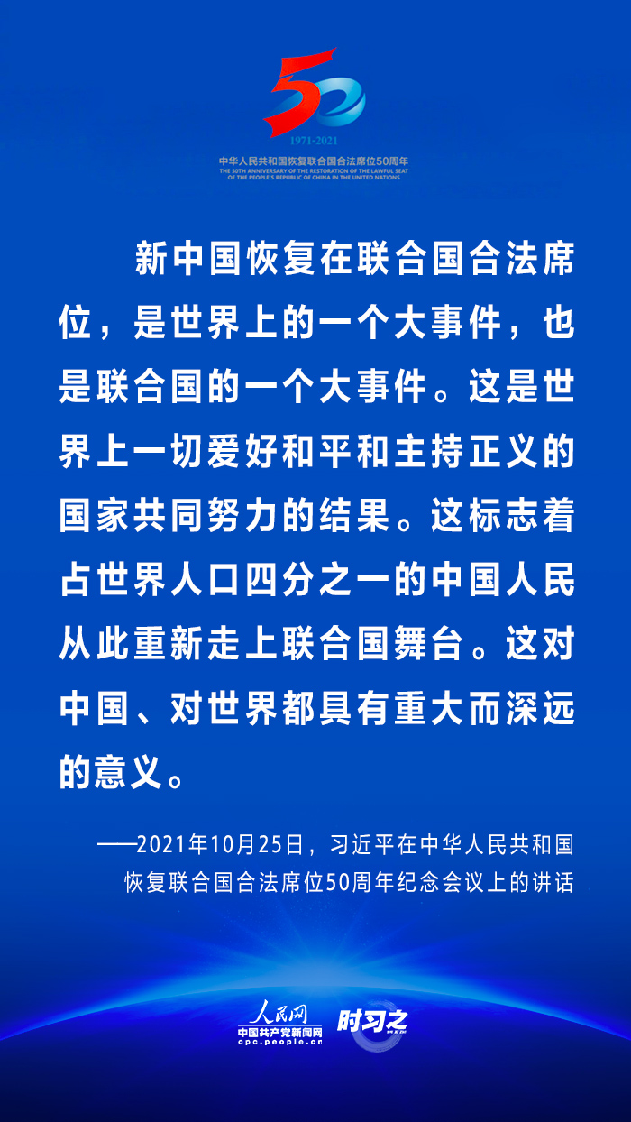 10月25日,國家主席習(xí)近平在北京出席中華人民共和國恢復(fù)聯(lián)合國合法席位50周年紀(jì)念會(huì)議并發(fā)表重要講話。在講話中,習(xí)近平回顧了中華人民共和國恢復(fù)在聯(lián)合國合法席位50年以來的重大成就,面對(duì)百年未有之大變局,重申中國將始終做世界和平的建設(shè)者、全球發(fā)展的貢獻(xiàn)者和國際秩序的維護(hù)者。 WTT安康新聞網(wǎng)
