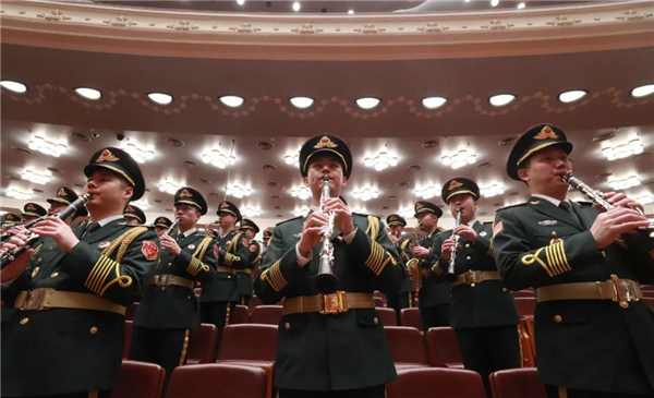 3月10日,中國人民政治協(xié)商會議第十三屆全國委員會第五次會議在北京人民大會堂舉行閉幕會。這是軍樂團在演奏。新華社記者 盧燁 攝