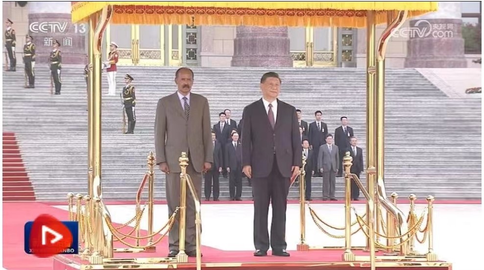 央視網(wǎng)消息(新聞聯(lián)播):國(guó)家主席習(xí)近平15日下午在人民大會(huì)堂東門外廣場(chǎng)舉行儀式,歡迎厄立特里亞國(guó)總統(tǒng)伊薩亞斯·阿費(fèi)沃基對(duì)我國(guó)進(jìn)行國(guó)事訪問(wèn)。