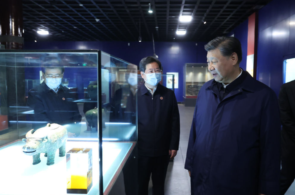 在河南安陽殷墟博物館,習(xí)近平總書記仔細觀摩青銅器、玉器、甲骨文等出土文物。“要通過文物發(fā)掘、研究保護工作,更好地傳承優(yōu)秀傳統(tǒng)文化。”