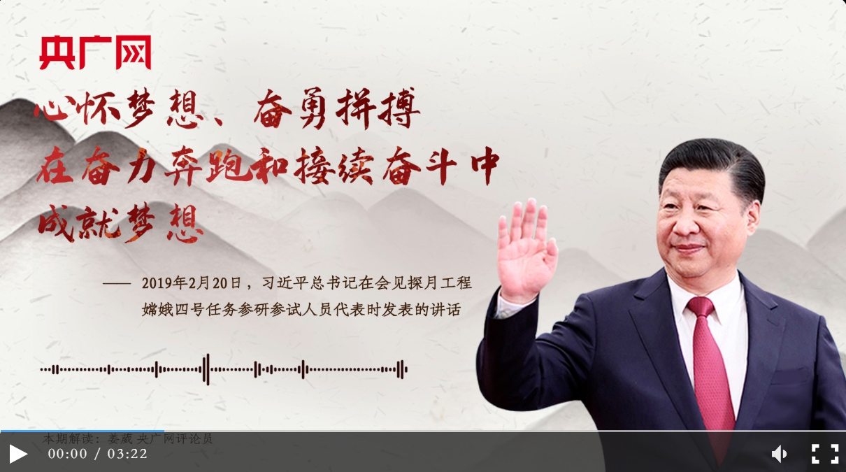 這句話出自2019年2月20日習(xí)近平總書記在會(huì)見探月工程嫦娥四號(hào)任務(wù)參研參試人員代表時(shí)發(fā)表的講話。