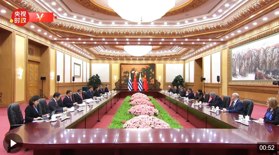 習(xí)近平指出,2023年是中烏關(guān)系史上特殊的一年,既是兩國建交35周年和烏拉圭加入共建“一帶一路”倡議5周年,也是你的父親、中國人民的老朋友拉卡列·埃雷拉前總統(tǒng)訪華30周年?偨y(tǒng)先生這次訪華具有重要意義。