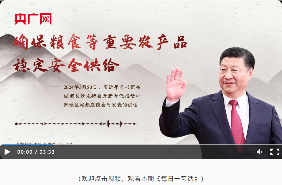 習(xí)近平:高質(zhì)量推進(jìn)糧食生產(chǎn)功能區(qū)、重要農(nóng)產(chǎn)品生產(chǎn)保護(hù)區(qū)和特色農(nóng)產(chǎn)品優(yōu)勢區(qū)建設(shè),打造一批綠色農(nóng)產(chǎn)品生產(chǎn)加工供應(yīng)基地,確保糧食等重要農(nóng)產(chǎn)品穩(wěn)定安全供給。
