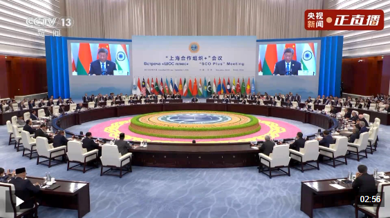 △“上海合作組織+”會(huì)議現(xiàn)場(chǎng)。(總臺(tái)央視記者曹亞星拍攝)