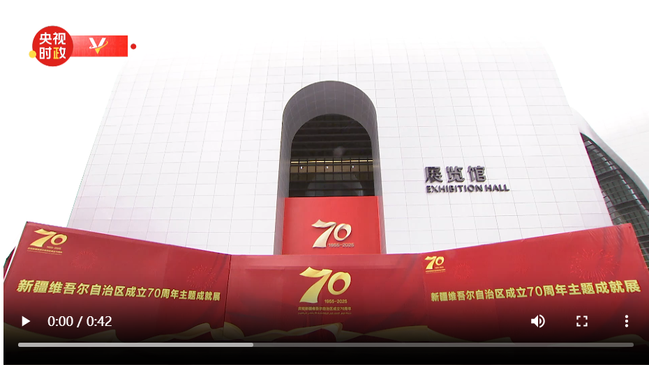 上午10時30分許,習近平等來到烏魯木齊文化中心展覽館,走進展廳參觀成就展。展覽通過“萬方樂奏換新天”“潮涌天山展宏圖”“美麗新疆鑄輝煌”3個部分,全景展現(xiàn)了70年來在中國共產(chǎn)黨堅強領導下、在全國各地大力支援下,新疆各族人民團結(jié)一心、艱苦奮斗、頑強拼搏取得的輝煌成就。