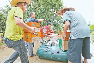 臺風(fēng)“山竹”逐漸減弱,各地各部門—— 做好災(zāi)后救助 有序恢復(fù)重建 9月18日,在廣東省陽江市陽春市,工作人員把食物搬運(yùn)到筏子上,準(zhǔn)備分發(fā)給受困村民。目前,……