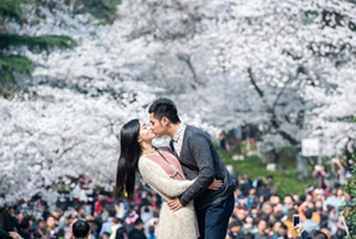 3月21日,武大櫻花盛開游客如織。當(dāng)日,武大櫻花盛開的首個(gè)雙休日。長(zhǎng)約200米的櫻花大道上1000多株櫻花競(jìng)相綻放,吸引著數(shù)萬(wàn)游客,使寧?kù)o的校園變成了熱鬧的公園……