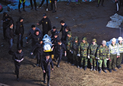 昨日,救援人員將搜尋到的乘客遺體搬上岸。當日,搜救人員在事故現(xiàn)場附近陸續(xù)尋獲5名罹難者遺體。仍有3名旅客下落不明。新華社記者 金立旺 攝