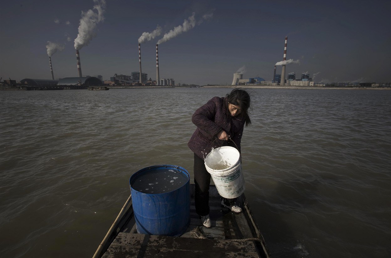 楊林港的一名婦女正從長(zhǎng)江里打水。楊林港共有50多戶漁民,幾十年來(lái)一直以捕魚(yú)為生,喝的都是長(zhǎng)江水。過(guò)去幾年,長(zhǎng)江的污染越發(fā)嚴(yán)重,散發(fā)出一股奇怪的味道。2003……