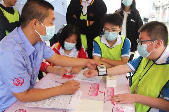 前來獻(xiàn)血的學(xué)生里有不少人還不滿十八歲,因?yàn)椴粔蚍ǘǐI(xiàn)血年齡,大家都帶著些遺憾不肯離開,血站工作人員見狀把大家組織在一起,給他們發(fā)放了無償獻(xiàn)血宣傳冊,鼓勵他們先了解相關(guān)知識,等年齡夠了再來。“只要有愛心,什么時候來都不遲!”工作人員笑瞇瞇地鼓勵到。