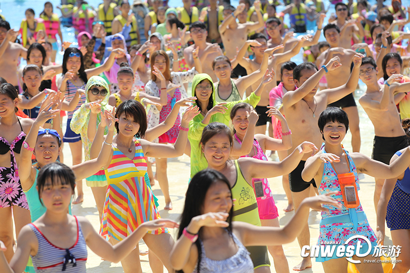 西安千人著泳裝水中跳小蘋果
