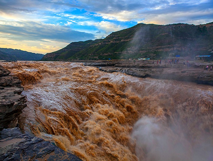 延安壺口瀑布進(jìn)汛期 主副瀑布連一線