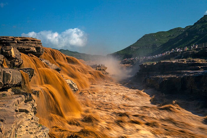 延安壺口瀑布進汛期 主副瀑布連一線