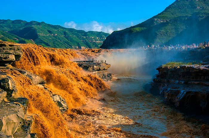 延安壺口瀑布進(jìn)汛期 主副瀑布連一線