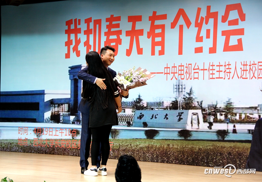 一名女學(xué)生向偶像康輝送來(lái)一個(gè)熱情的擁抱。