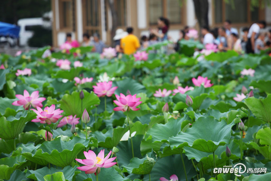 曲江池荷花爭(zhēng)相開放 端莊美麗引游人