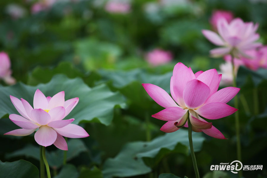 曲江池荷花爭(zhēng)相開(kāi)放 端莊美麗引游人