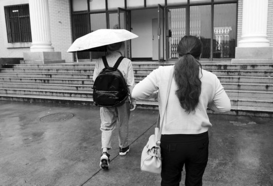 李艷范和母親張女士返校 本報(bào)記者李宗華攝