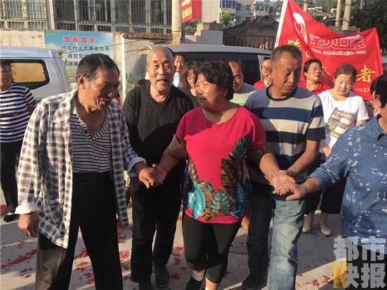 下午5點多鐘,李大叔走出村口迎接這失散了22年的女兒,鞭炮,鑼鼓聲聲震天, 警車,警燈不斷閃爍。