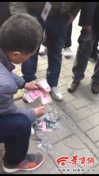昨日,華商報記者了解到,事發(fā)28日下午1時許,燒錢的地點在紡織城紡正街與紡二路路口。從視頻看,男子所燒的鈔票有上萬元,也有目擊者稱燒了兩萬余元。雖沒有驗證真?zhèn)危辔荒繐粽叻Q,男子燒的是真錢,整個燒錢過程持續(xù)了三四分鐘。