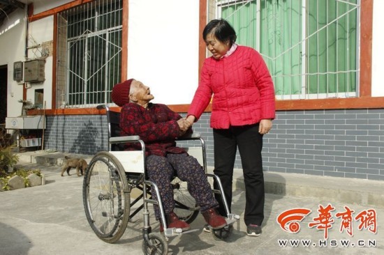 周文秀說,她今年66歲,可自己的身體都比不過婆婆,“我們都沒想到婆婆能活這么大歲數(shù),現(xiàn)在我也老了照顧不上婆婆,多虧我的兩個(gè)兒子孝敬老人照顧她!