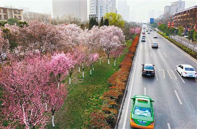 三月是西安最美的季節(jié),氣溫宜人,花朵競(jìng)相綻放。這兩天南二環(huán)沿線綠化帶里的不少樹木都已開花,駕車疾駛而過,芬芳撲鼻,一派春意盎然。而這些都得益于西安大力開展的‘五路’兩側(cè)增綠美化項(xiàng)目。