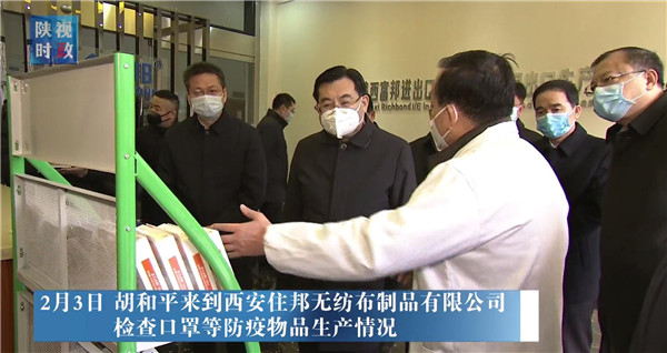 胡和平來(lái)到西安市鄠邑區(qū)西安住邦無(wú)紡布制品有限公司,檢查口罩等防疫物品生產(chǎn)情況。