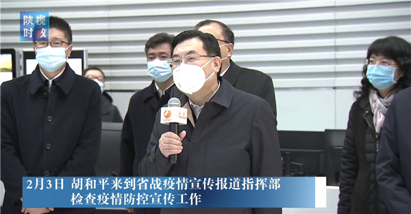 2月3日,省委書記胡和平到省戰(zhàn)疫情宣傳報(bào)道指揮部和西安市檢查新型冠狀病毒感染的肺炎疫情防控工作,看望慰問(wèn)防控一線工作人員。