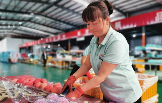 在頂端果業(yè)的生產(chǎn)車間里,一個個蘋果通過選果線,經(jīng)過測外觀、測糖酸比、測霉心等環(huán)節(jié)的智能篩選,“淘汰”不符合標(biāo)準(zhǔn)的蘋果,然后按照不同規(guī)格和需求,分流到各個渠道進(jìn)行包裝和對外銷售。