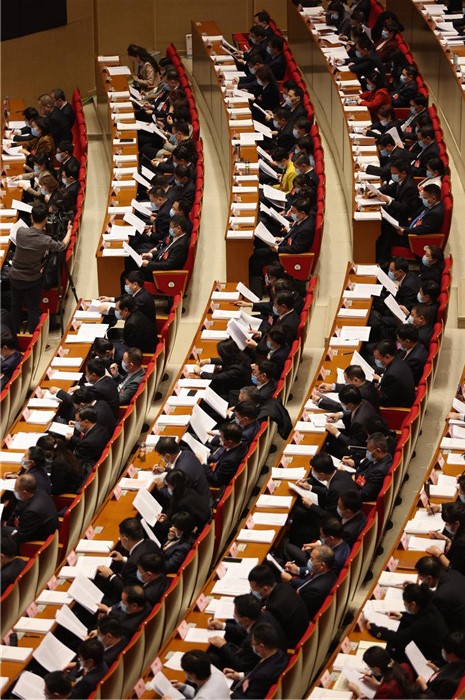 會(huì)場(chǎng)布置簡(jiǎn)樸,氣氛莊重?zé)崃。大?huì)主席臺(tái)上,帷幕正中的國(guó)徽在鮮艷的紅旗映襯下熠熠生輝。主席臺(tái)對(duì)面懸掛著“高舉習(xí)近平新時(shí)代中國(guó)特色社會(huì)主義思想偉大旗幟,把握新發(fā)展階段,貫徹新發(fā)展理念,構(gòu)建新發(fā)展格局,只爭(zhēng)朝夕、真抓實(shí)干,奮力譜寫陜西新時(shí)代追趕超越新篇章”的橫幅,鼓舞人心、催人奮進(jìn)。大會(huì)主席團(tuán)常務(wù)主席劉國(guó)中、胡衡華、劉小燕、姜鋒、朱靜芝、郭青、梁宏賢、戴征社、郭大為、韓水岐在主席臺(tái)前排就座。在主席臺(tái)就座的還有:趙一德、韓勇、馬中平、張廣智、梁桂、徐新榮、王曉、王興寧、莊長(zhǎng)興、王浩、楊志斌、大會(huì)主席團(tuán)其他成員,副省長(zhǎng),省政協(xié)副主席,省高級(jí)人民法院院長(zhǎng),省人民檢察院代檢察長(zhǎng),在我省的十三屆全國(guó)人大常委會(huì)委員,省軍區(qū)、武警陜西省總隊(duì)主要負(fù)責(zé)人,在我省的副部級(jí)高等院校主要負(fù)責(zé)人,省人大代表、省政協(xié)委員中的省級(jí)干部等。擔(dān)任過(guò)我省正省級(jí)職務(wù)在陜西的老同志、其他非住會(huì)列席人員通過(guò)電視、網(wǎng)絡(luò)收看大會(huì)現(xiàn)場(chǎng)直播。省十三屆人大五次會(huì)議應(yīng)到代表559人,出席本次全體會(huì)議的代表521人,符合法定人數(shù)。9時(shí)整,主持會(huì)議的劉國(guó)中宣布:陜西省第十三屆人民代表大會(huì)第五次會(huì)議開(kāi)幕。全體起立,奏唱國(guó)歌。