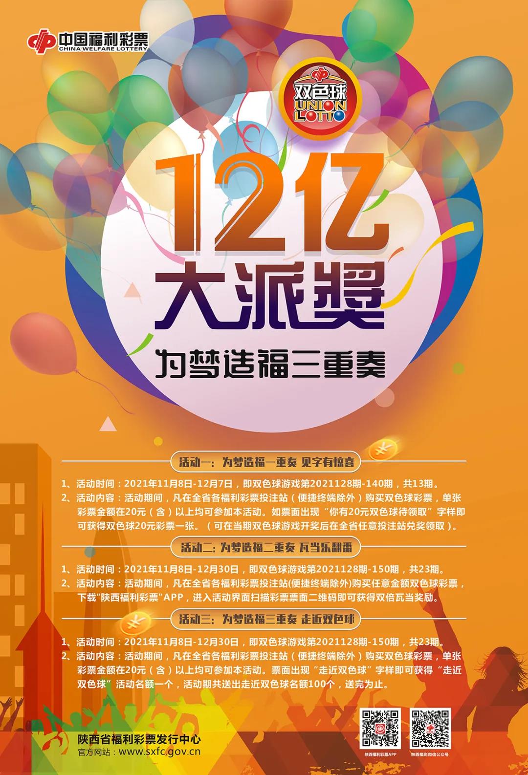 為夢造福,歡樂開啟,陜西福彩驚喜好禮送不停,活動時間:2021年11月8日-12月30日。