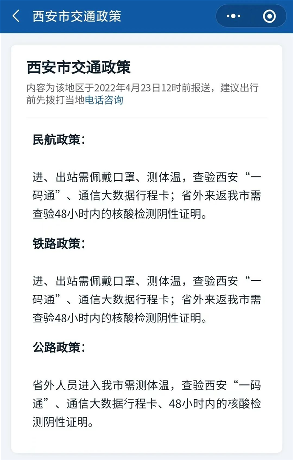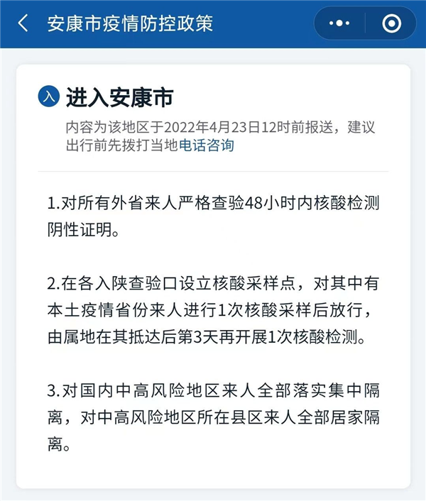 陜西省內(nèi)各市最新的疫情防控政策來(lái)了!(截至4月23日)建議出行先撥打當(dāng)?shù)仉娫捵稍儯?/strong>M2Z安康新聞網(wǎng)