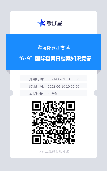 2022年6月9日是第15個(gè)“國(guó)際檔案日”,為深入貫徹落實(shí)習(xí)近平總書(shū)記關(guān)于新時(shí)代檔案工作的重要批示精神,進(jìn)一步擴(kuò)大新修訂的《檔案法》的宣傳普及效果,省檔案局館組織開(kāi)展檔案知識(shí)有獎(jiǎng)競(jìng)答活動(dòng)(線上)。