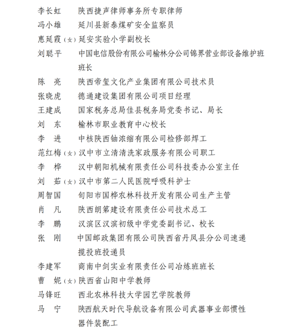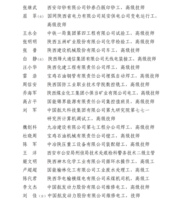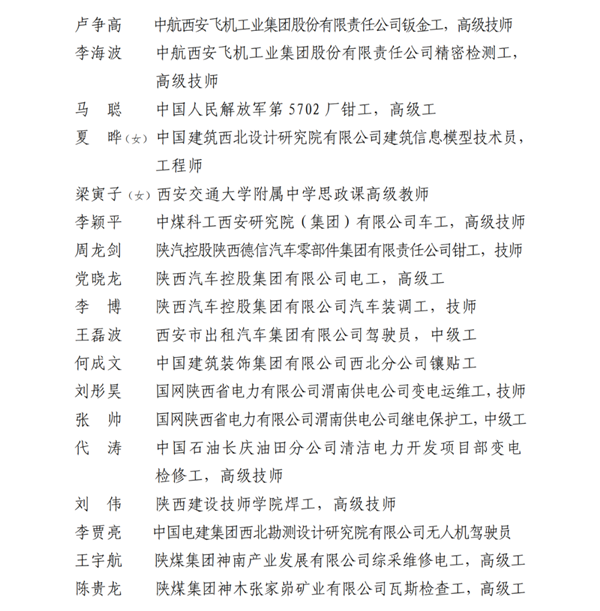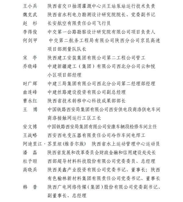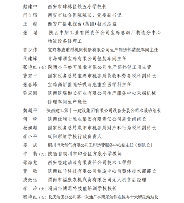 2023年陜西省五一勞動獎名單
