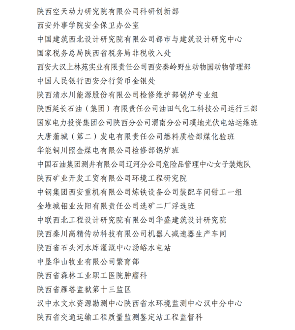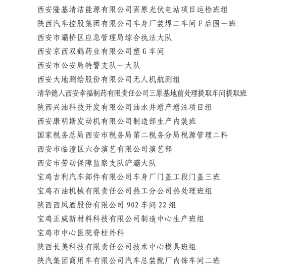 2023年陜西省工人先鋒號名單
