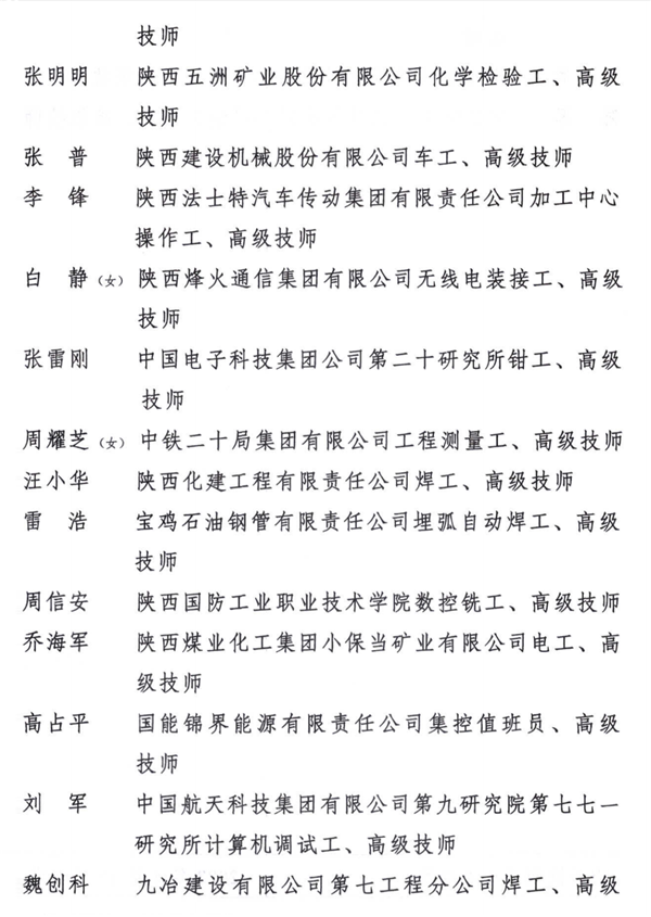 原標題:關于命名表彰2022年“三秦工匠”的決定
