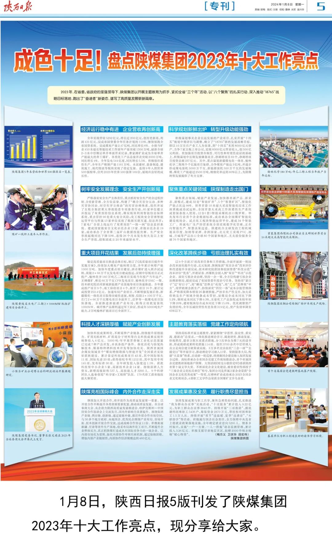 2023年,在省委、省政府的堅強領導下,陜煤集團以開展主題教育為抓手,緊扣全省“三個年”活動,以“八個聚焦”的扎實行動,深入推動“18765”戰(zhàn)略目標落地,跑出了“奮進者”新姿態(tài),譜寫了高質量發(fā)展嶄新篇章。