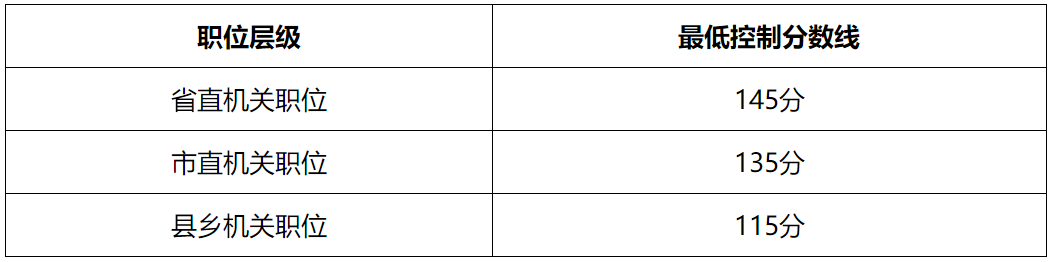 1.最低控制分?jǐn)?shù)線。為確保錄用人員的基本素質(zhì),區(qū)別職位層級(jí)劃定進(jìn)入面試資格復(fù)審人員的公共科目筆試總成績(jī)(不含公安專業(yè)考試成績(jī))最低控制分?jǐn)?shù)線,具體情況如下: