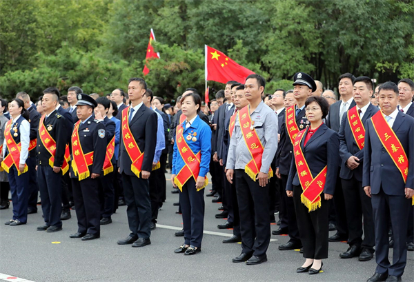 先進(jìn)典型代表參加升國(guó)旗儀式。
