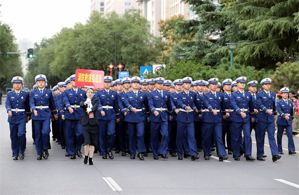 消防救援指戰(zhàn)員代表參加升國(guó)旗儀式。