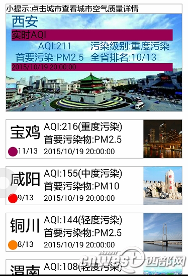 晚20時(shí)西安AQI指數(shù)達(dá)到211,首要污染物為PM2.5。西部網(wǎng)訊(記者 彭芬) “今天霧霾太嚴(yán)重了,開車走在二環(huán)上,遠(yuǎn)一點(diǎn)的地方根本看不清!奔易∥靼彩形鹘嫉膹埮俊