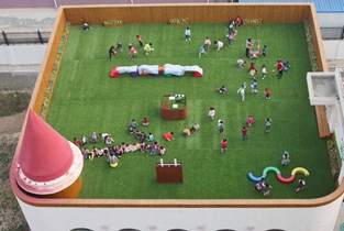 2015年10月20日,陜西省西安市西影路一幼兒園的小朋友們?cè)谖蓓敳賵?chǎng)打球,翻跟斗,做游戲,捉迷藏…… 玩夠了,跳累了,躺在屋頂曬太陽。漂亮安全的屋……