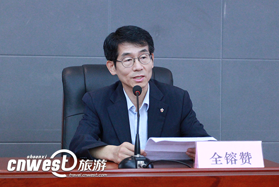 韓國旅游發(fā)展局西安辦事處首席代表全镕贊介紹主賓國的活動安排。西部網(wǎng)訊 2015中國西安絲綢之路國際旅游博覽會(簡稱絲路旅博會)將于9月11日-13日在西安曲江國際……