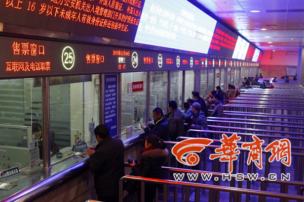 昨日9時(shí),西安火車站1號(hào)售票大廳內(nèi)空空蕩蕩,絲毫沒有春運(yùn)氣氛 記者 閆文青 攝在窗口買票的只有9個(gè)人,這不是一個(gè)窗口的人數(shù),而是28個(gè)售票窗口的總?cè)藬?shù)。昨日……