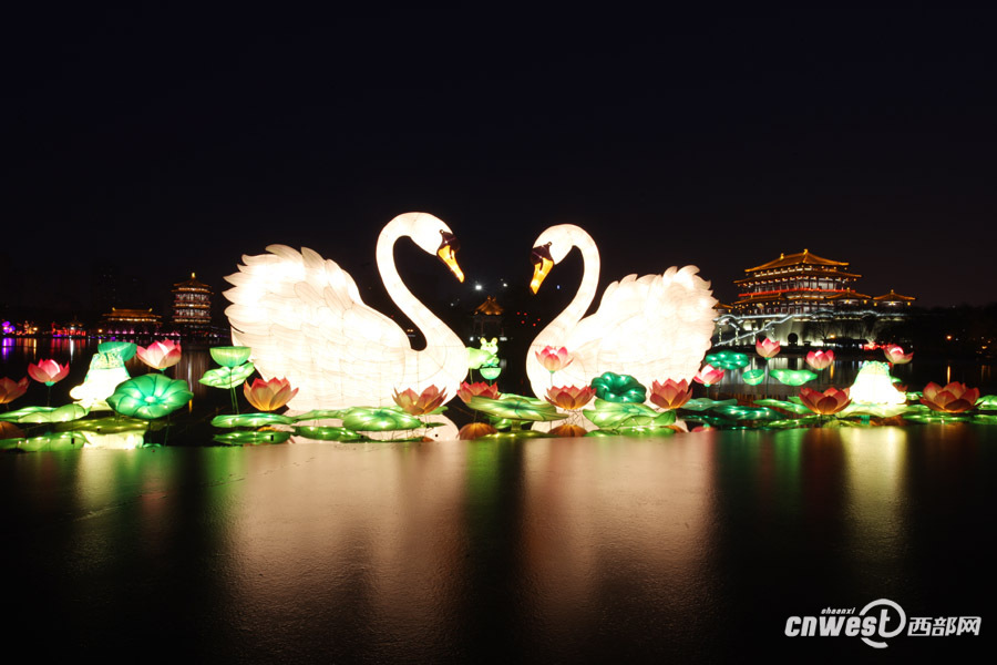 這兩只高達(dá)5.5米的巨型“天鵝”,是本屆燈會(huì)主打的彩燈之一。西部網(wǎng)訊(記者 魏永賢 敬澤昊)2月4日晚,西北地區(qū)最大的水陸燈會(huì)在大唐芙蓉園舉行點(diǎn)燈儀式,上百盞……