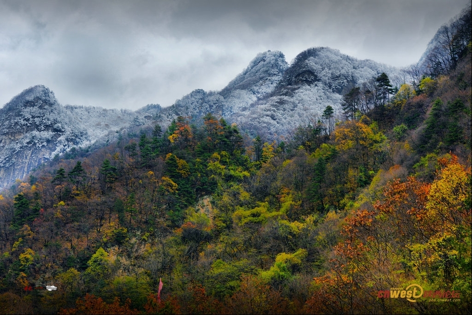 秦嶺山上的一場雪,讓萬山紅遍的群山穿上了一件白色的上衣。西部網(wǎng)論壇網(wǎng)友“張壹”拍攝西部網(wǎng)訊 雖然還沒有立冬,但是秦嶺山上的一場雪,讓萬山紅遍的群山穿上了……