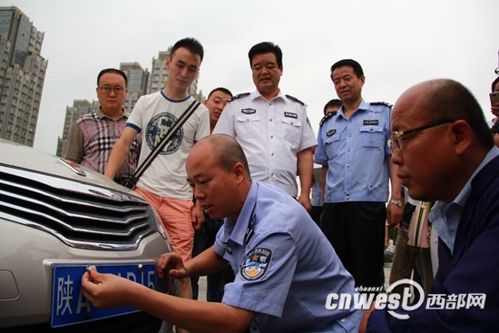 圖注:西安市車管所民警為第200萬輛機動車掛牌西部網(wǎng)訊(記者 孫鵬) 截止7月3日,西安市全市機動車保用量突破200萬輛大關(guān)。上午10時左右,交管部門在車管所舉行“第……